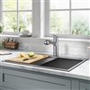 - Spout swivels 180° for a broad range of motion all around the kitchen sink