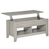 Add a chic, modern touch to your living room or office with this HOMCOM coffee table. The table top lifts up and out to create a convenient floating desk, revealing a hidden storage compartment below. Built from particle board, this coffee table is built to withstand long-term use. It is stylish, functional and perfect in front of a couch or in a home office, providing ample work and storage space.