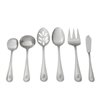 - Set includes: 8 dinner forks, 8 dinner spoons, 8 salad forks, 8 teaspoons, 8 dinner knives, 1 serving spoon, 1 slotted serving spoon, 1 gravy ladle, 1 serving fork, 1 butter knife, 1 sugar spoon