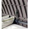 The Glenwood deck box is an impressive combination of durability, convenience and appearance. It’s made of weather-resistant resin with an attractive wood-paneled look and offers a total of 382-L in storage capacity. It also comes with automatic pistons, lockable lid and provides seating space for two adults.