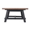 - Rustic industrial style with natural solid wood tops and distressed black legs