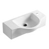 A simple small porcelain wall-mounted bathroom sink is sometimes harder to find than you might think. This ALFI brand corner sink offers a modern sink design in a compact size and convenient shape. It's perfect for upgrading small bathrooms or powder rooms.
