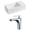 It features a rectangle shape. This vessel set is designed to be installed as an above-counter vessel set. It is constructed with ceramic and it comes with an enamel glaze finish in white colour. It is designed for a 1 hole faucet.