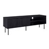 Enhance your living space with the Alexander fluted TV stand for TV's up to 75 inches, a beautiful blend of classic artistry and modern practicality. This piece has a solid black engineered wood grain finish, a classic fluted design, and modern black metal legs. It has two compartments (1 open and 1 closed), where you can store your movies, games, or entertainment accessories. You can also use it as a photo display, or a creative canvas for your DIY projects. At only 59 inches in length, it fits into smaller spaces, making it ideal for cozy studios or spacious homes. The Alexander TV stand is made from premium engineered wood, easy to assemble, and matches with other items from the Alexander collection. Order yours today and enjoy the convenience, affordability, and quality that the Alexander Collection offers.