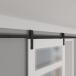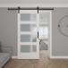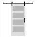 The perfect combination of elegance, style and farm house chic awaits you with this 4-Lite frosted glass paneled door. Wrapped in a durable scratch resistant vinyl, this door does not require additional finishing or painting. The frosted center glass panels will help to open up your space by allowing natural light to flow through while still respecting privacy. Includes black metal installation hardware kit with ultra-quiet rollers and matching handle.