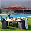 This patio offset umbrella provides an ample shade to keep you cool and protect you from the hot sun. Made of strong thick aluminum pole and 8 sturdy ribs, the patio offset umbrella is ultra-durable. Besides, it can also rotate 360° to your preferred position by simply stepping on the foot pedal and turning the pole with your hands.