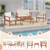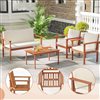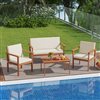 Costway 4-Piece Acacia Wood Conversation Set with Seat, Back Cushions, Loveseat & Armchairs