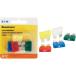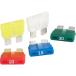 Fast acting ATC blade fuse assortment. Features an enclosed element. Assortment contains one each of 10, 15, 20, 25 and 30-amp fuses. Blister pack containing a 5 fuses assortment (red, blue, yellow, clear and green). Corrosion resistance for longer service life.