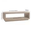 A uniquely infinity inspired design, this coffee table is a perfect accent piece to compliment a modern-retro room space. Rounded top and bottom edges with an insent plinth base, with a natural look wood grain finish. Featuring a 50 lb weight capacity and an additional lower shelf for storage or to display your favorite things. A transitional piece for your living room, office, or dining room.