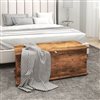 HOMCOM Rustic Brown Composite Wood Lift Top Storage Chest with 2 Safety Hinge