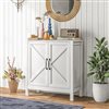 - Modern farmhouse style with a barn door design and wood grain finish