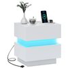 HOMCOM White Composite 14 D x 18 H x 18-in W Modern Nightstand w/ Charging Station and LED Light