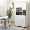The modern kitchen storage cabinets from HOMCOM fit nicely with any decor and can be used in the kitchen, pantry, garage, or bathroom to create stylish additional storage. White coated engineered wood provides an easy to clean, smooth surface that will help keep your pantry cabinet with hutch clean and sanitary. Ample storage cabinets and drawers plus an open countertop shelf provides an amazing amount of storage in this compact microwave cabinet.
