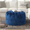 Homy Casa Miya Modern 23.6" Round Blue Velvet Ottoman
