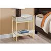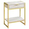 Add instant style to a room with this contemporary multifunctional side/end accent table. It features a spacious rectangular table top with an elegant beige marble-look finish and one large storage drawer on metal glides with a simple gold metal handle on top. The open bottom shelf in the same finish is handy to store or display more items and the simple square gold metal supports tie it all together in an effortless design. Bring this accent table into the bedroom as a chic nightstand, place it next to your modern sofa or arm chair as a useful side table. The compact size also makes it ideal for smaller spaces. Assembly is required.