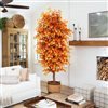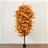 Welcome to the timeless beauty of fall into your home with our autumn artificial ficus tree. A beloved staple reimagined for the harvest season. Just right for adding a touch of life and colour, our ficus stands proudly with a slender trunk and a lush canopy of leaves, each one a tribute of autumn fts palette. Designed by skilled horticulturists, the branches are fully adjustable, allowing you to create the perfect shape for your space. Rising to 9 ft from a nursery planter, DIY and pick a pot you like, whether it’s your living room, bedroom, or bathroom. Ideal for enhancing the cozy ambiance of Thanksgiving, the spooky spirit of Halloween, or the fullness of the autumn harvest, our faux ficus offers fall charm with zero upkeep.