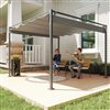 - This 10 x 10‑ft metal pergola features a powder‑coated frame for added strength, a retractable roof for adjustable shade, and an open, spacious design that comfortably accommodates multiple people in one area