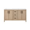OVE Decors Solas Double Sink Freestanding Bathroom Vanity w/ White Engineered Stone Top 60-in - Sahara Birch
