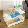 Create a safe space for your hamster to feel at home with this large hamster house from PawHut. Made of steel wire with a front door, this allows for air circulation and is easily accessible to your pets. Includes a hut on the perch, water bottle, food dish, ramp and exercise wheel, this hamster cage for Syrian hamster provides ample living and activity space. The whole unit sits above the floor and is an overall great home for your pets.