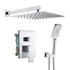 - 3-function with 1 switch: select between a 10" large square overhead shower and hand shower separately or choose overhead shower+hand shower simultaneously (choose among 3 shower settings with one button)