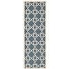 The Courtyard rugs bring a contemporary look to your busy living spaces both indoors and outdoors. This navy blue and beige rug measures 2.3 x 10 feet.