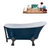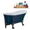 Streamline 55.1-in Blue/Matte Black Acrylic Oval Reversible Drain Clawfoot Bathub with Tray