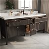 The 72-in Davos Vanity is a statement piece that combines luxury and practicality. Its intricate fluted detail adds a refined touch, while five drawers and four doors offer generous storage for all your bathroom necessities. The painted finish, meticulously sanded for a smooth texture, pairs beautifully with the 2-in profile stone countertop, which adds a modern and seamless look. Designed for expansive bathroom spaces, this vanity brings both style and functionality to the forefront.