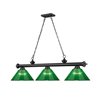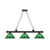 - With a dramatic, matte black finish frame and three green acrylic shades, this traditional metal billiard light adds a colourful, modern edge to classic interior décor