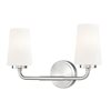 Cool and precise, the streamlined silhouette of this modern two-light vanity sconce shines with a brushed nickel finish. A pair of ribbed matte opal glass shades diffuse the light, creating a soft, ambient glow perfect for both ambiance and grooming and beauty rituals. A sleek design with industrial attitude, this wall light offers updated appeal perfect for bathrooms small and large.