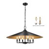 Bring cozy warmth and elegance to your living or dining room with this industrial six-light pendant. A matte black finish frame and conical shade are paired with a gold finish shade interior, casting inviting illumination over a living or dining space. The fixture includes alabaster bobeches and comes with three candle sleeve finishes for the perfect look every season.