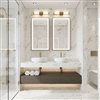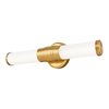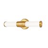 Modern gold finishing creates sophisticated warmth for the clean lines of this modern LED vanity bath light. The integrated LED is dimmable and energy efficient, offering five colour selections to ensure the perfect ambiance for your space. The fixture features delicately ribbed cylinders of opal glass, ensuring inviting illumination.