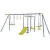 Outsunny Metal Swing Set for Backyard with Saucer Swing, Glider, Slide