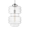 The Ballina collection of pendants are defined by their large, clear shapely glass shades. These stand-out pendants work well alone and even better in groups. A polished nickel and silver hanging wire complete Ballina's modern design.