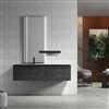 Bring modern elegance to your bathroom with the Theo Wall-Hung Vanity in Antique Silver. Featuring a seamless Dark Ash Sintered countertop with integrated sinks, this floating vanity saves space while adding a sleek, contemporary touch. Crafted from durable Silver plywood with a warm wood veneer, it includes a spacious soft-close drawer with hidden German-engineered glides for smooth functionality. The countertop is pre-drilled for a single-hole faucet (faucet not included), and its surface is smooth, easy to clean, and built to last making it an ideal choice for larger bathrooms.