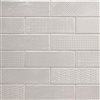Twilight Haze 3D Mix 4X12 Glossy Ceramic Wall Tile is at once traditional and contemporary. This soft grey tile features a medley of sought-after designs and patterns that are rich with character. Whether installed horizontally, vertically, or in a herringbone pattern for a touch of the unexpected Twilight Haze 3D Mix gives your walls, backsplash, shower surrounds, and fireplace facades a fresh updated aesthetic. Durable, easy to clean, and low maintenance, this large format ceramic subway tile is suitable for residential and commercial spaces.