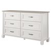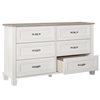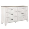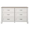 Give your bedroom an instant upgrade with this stunning 6-drawer dresser. The white woodgrain with grey oak top on laminated MDF and particle board give this dresser a classic style that will pair with any decor. The pewter drawer pulls complement the decorative feet and moulding on the drawer fronts and dresser corners for a sophisticated look. The 6 drawers offer plenty of storage for your shirts, pants, and sweaters, and the top of the dresser is a perfect place to display family photos and decorations. A wall anchor kit is included with the dresser to keep your family safe.