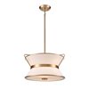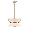 The Layla collection, designed by Kevin Kraemer, features a rich plated brushed brass finished frame, which holds the double linen shades in a unique fashion. A stunning fixture for any kitchen or dining room.