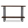 Combine contemporary flair with rustic styling and you have the essence of our Newcastle wood and metal console table. Right angles abound in this table's black-finished metalwork for a geometrically intriguing presentation. A distressed ash veneer wood top and shelf maintain the vintage-industrial vibe while offering attractive storage space. Sturdy construction ensures years of use.
