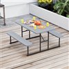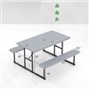 Elevate Your Leisure Experiences with Style and Reliability! This rectangular picnic table with 2 benches measures 59-in x 53-in x 30-in (L x W x H), offering ample seating space for 2-4 individuals. With a convenient umbrella hole in the centre of the tabletop, you can add shade with ease (Note: Require a weighted base to secure your umbrella, not included). Moreover, the plastic surfaces are also waterproof for easy cleaning, ensuring it looks great all year-round. The robust metal frames, complemented with adjustable footpads and sturdy screw connections, ensure stability and durability, making it suitable for various outdoor settings without wobbling. Colour: Grey/Black; Product Dimensions: 59-in x 53-in x 30-in (L x W x H); Table Size: 53-in x 28-in x 30-in (L x W x H); Bench Size: 53-in x 9.5-in x 18-in (L x W x H); Weight Capacity of the Table: 135 lb