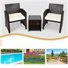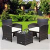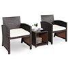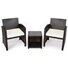 Costway 3-Piece Mix Brown PE Rattan Wicker Patio Bistro Set - White Cushions