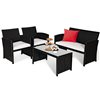Costway Rattan and Metal Frame Patio Conversation Set with White Cushions Included - 4-Piece