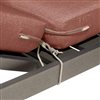 [This review was collected as part of a promotion.] The outdoor chaise cushion pictured is in the Cedarwood color, which goes well with any earth tone decor. The cushion is comfortable but a definitely on the firm side. It is not waterproof which would have been awesome so I’ll have to remember to put it away overnight. It is a good fit for my lounge chair and is going to be great to have by the pool. The clips are also nice to keep the cushion in place. Very nice, well made product.