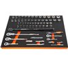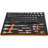 - Set Includes: socket extensions, quick release ratchets, swivel head ratchets, stubby ratchets, U-Joints, SAE & metric sockets, 3/8-in dr. torque wrench, foam tray: 21 7/8-in (w) X 15-in (d) X 1 1/4-in (h)
