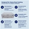 - Powerful blower system unites with high CFM suction power is ideal for heavy-duty cooking, heat and smoke, boiling, steaming, poaching, braising, frying, searing and sauteing