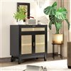 HOMCOM 31-in W Black Particleboard Freestanding Boho Sideboard w/ Rattan Doors