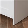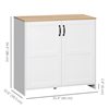 This lovely white buffet with a wood-look top will bring a cozy and warm atmosphere to any interior space of your choice, whether it's the living room, kitchen, etc. Offering ample storage space with its double-door cabinet and adjustable shelves, you can store dishes, small appliances, and much more.