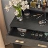 - Ample storage with a drawer, 3 open shelves and a cabinet with adjustable inner shelving