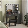 HOMCOM 40.9-in W Black Engineered Wood 2-Drawer 1-Door Lighted Dressing Table w/ Mirror and Stool