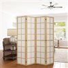 HOMCOM 63 W x 67-in H 4-Panel Natural Wood/White Fabric Folding Checkered Privacy Screen