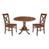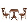 International Concepts 3-Pc 42-in Dual Drop Leaf Wood Dining Table Set w/ 2 Cross Back Dining Chairs - Espresso